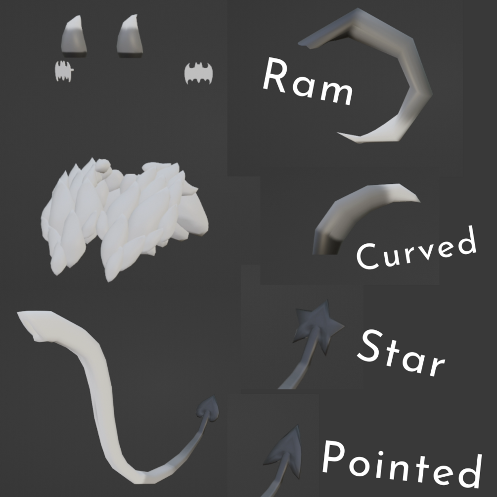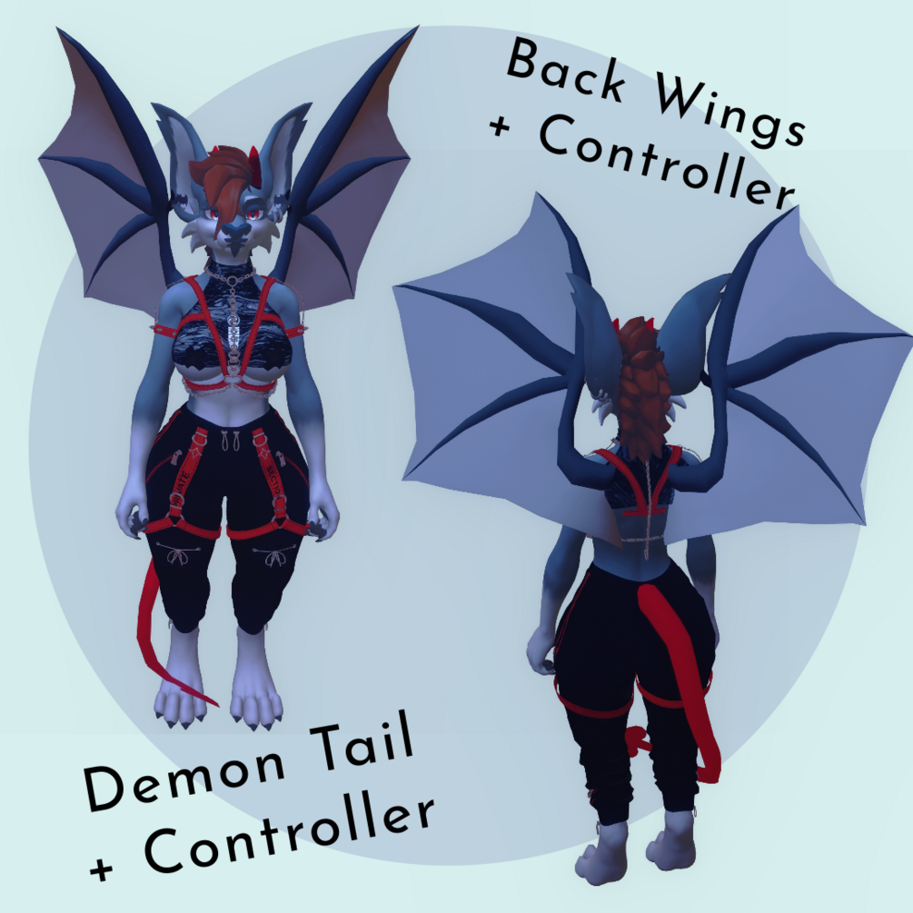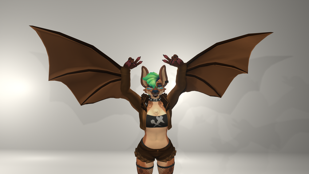 ☆Want your hyenid to have some Batty accessories, look no further! Comes with wings, earrings, horns, and a demon tail! All with easy VRC Fury setup, just drag and drop!