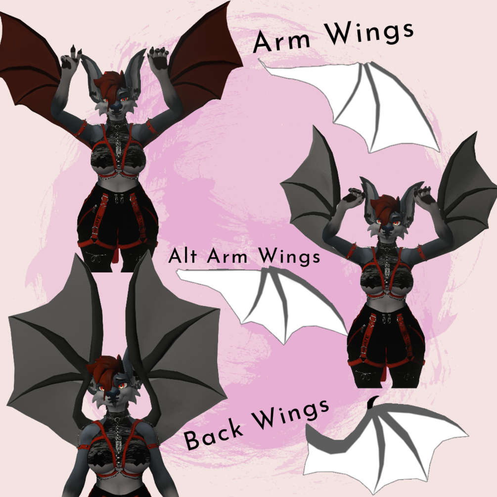 - 2 different Bat Arm wings with physbones and radial sizing in VRC